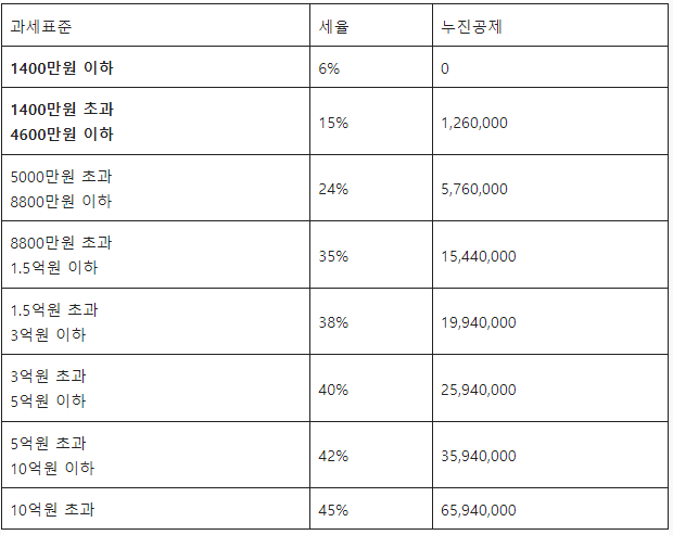 ☛ 누진공제는 소득에 따라 세율이 단계별로 높아집니다