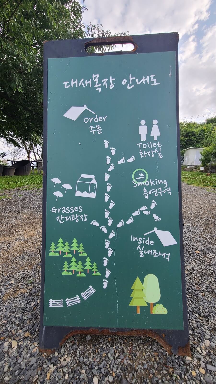 주차하시고 목장으로 들어가면 나무와 풀 이정표들을 만날 수 있습니다