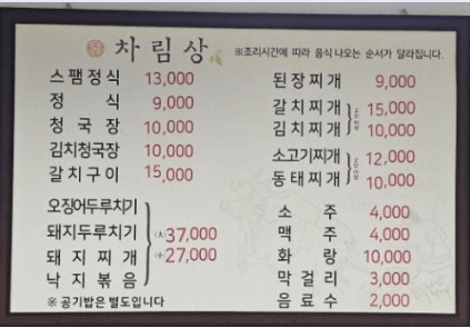 저는 스팸정식 되지 두루치기 `소` 를 주문했습니다