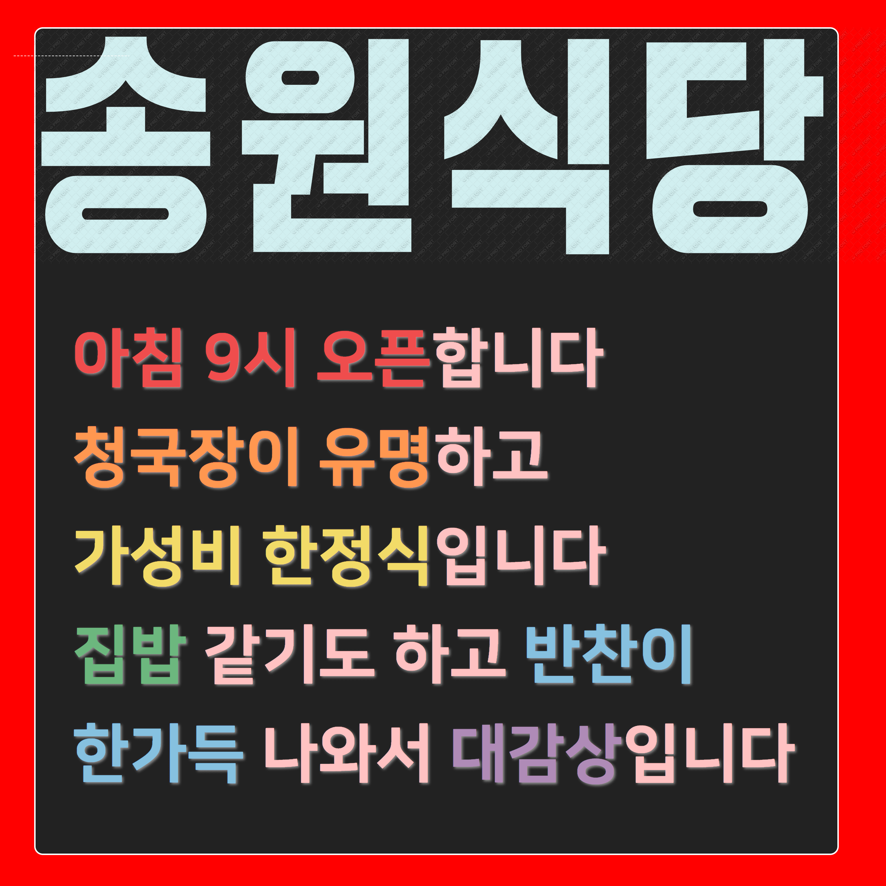 [송원식당] 같은 이름은 많지만 여긴 청국장집입니다 그리고 한식집인데 가성비 넘치고 맛도 좋고 그런데 반찬이 이렇게 많이 나온다고? 아침 9시 오픈