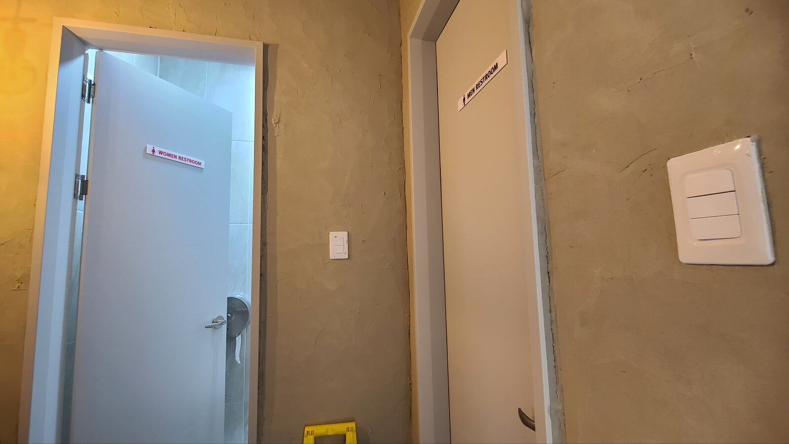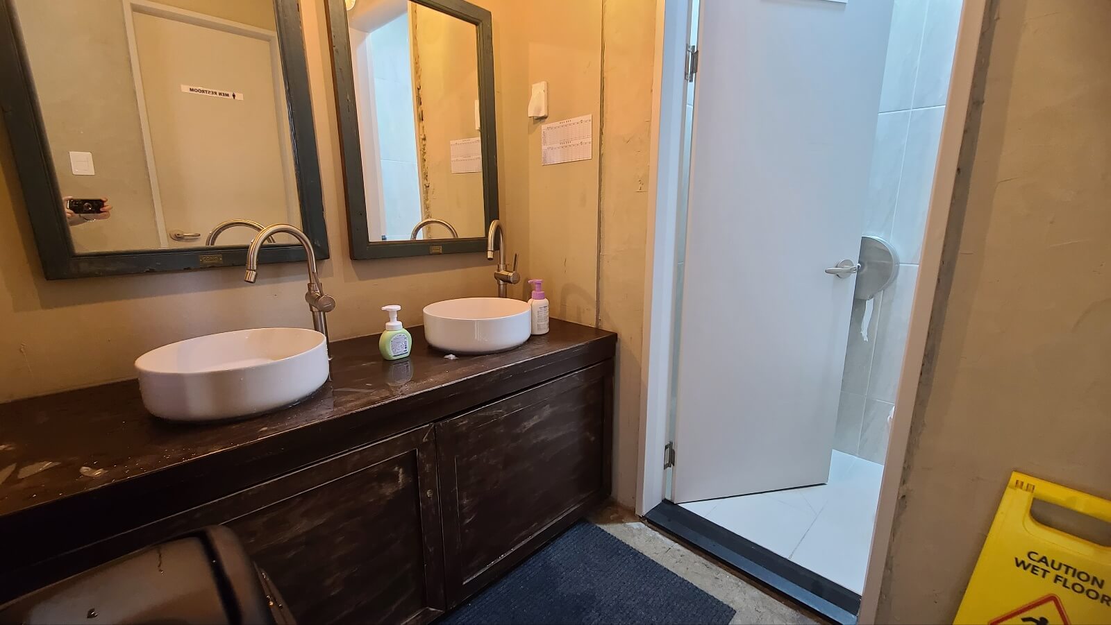 화장실은 3층에 있고 남녀가 분리된 형태입니다. 다만 세면대가 남자 화장실 쪽에 설치되어 있어 마지막에는 결국 헤어졌다가 만나야 하는 구조입니다.
