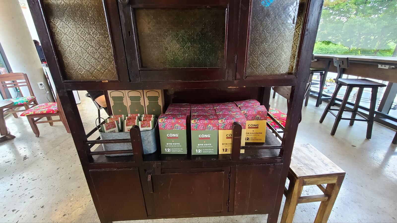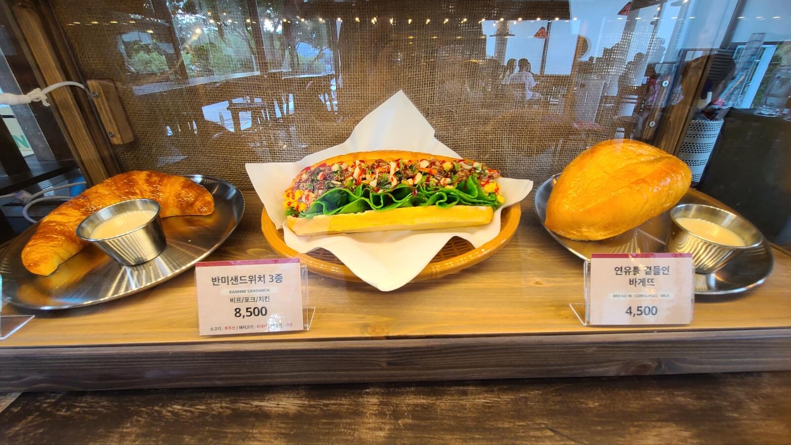 판매되는 반미와 빵 그리고 베트남 커피가 카운터 반대편에 전시되어 있습니다. 기념품으로 사서 선물해도 좋을 것 같습니다.