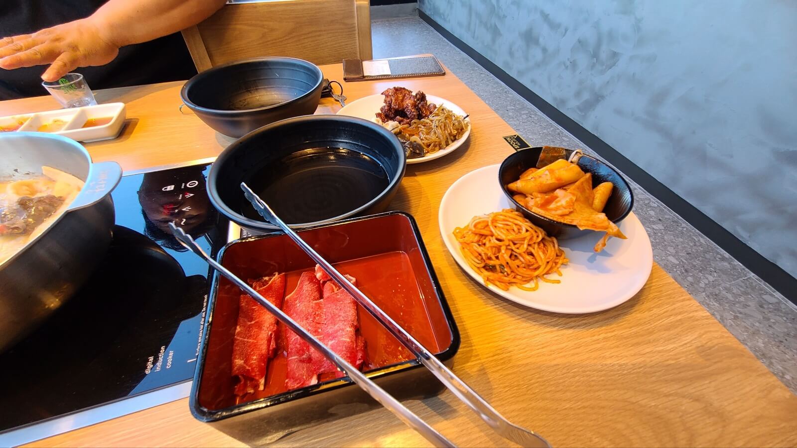 먹음직스럽게 이미 조리된 음식들은 샤부샤부가 끓기 전에 애피타이저로 드시면 좋을 것 같고 아니더라도 수시로 가져다 먹으니 맛있습니다.