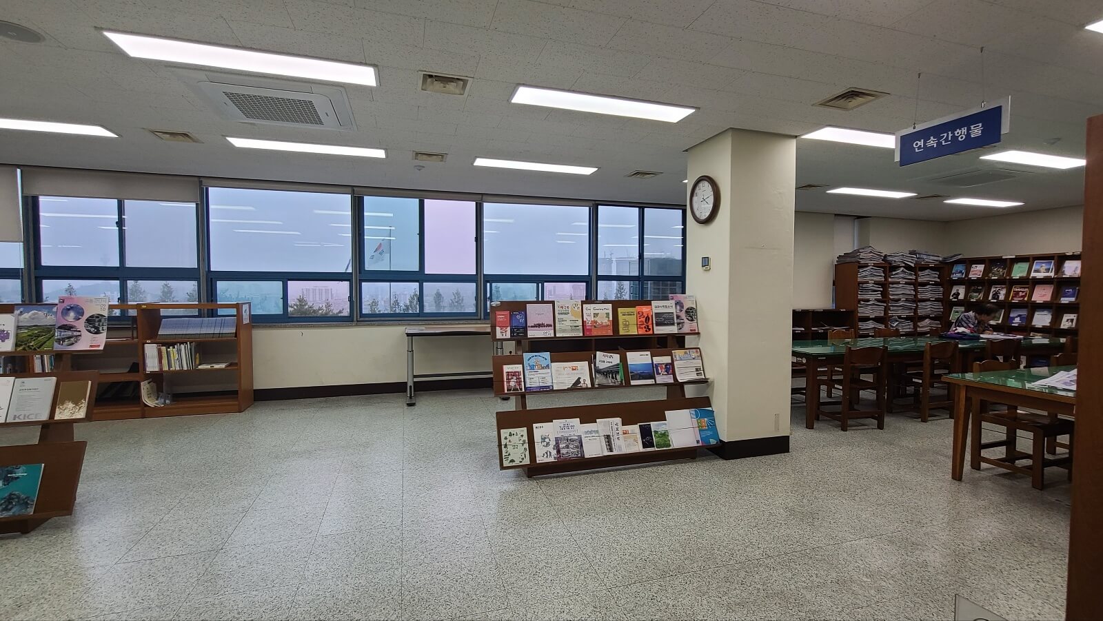 신문 잡지등을 찾아볼 수 있는 공간입니다. 비교적 한산하고 조용합니다 정기간행물은 인터넷 매체로 접할 수 있어 자료실이 인기가 없는 듯합니다.