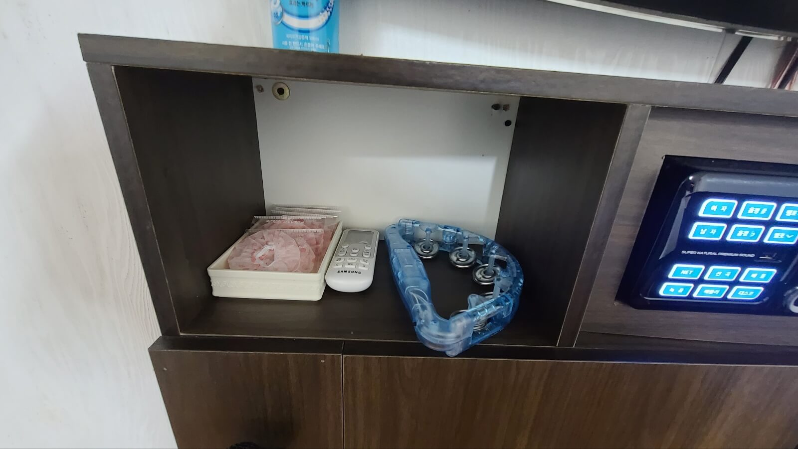노래방은 공용 시설이 아니라 개별 호실만 사용하는 전용 노래방입니다. 어린이들이 물놀이할 때 살짝 다녀와도 되고 아이들과 함께 가도 재미있었습니다. 프라이빗한 느낌이 들어서 더 좋았던 것 같습니다. 음향도 좋고 마이크는 두 개밖에 없었지만 성능이 좋아 즐거운 시간을 보낼 수 있었습니다
