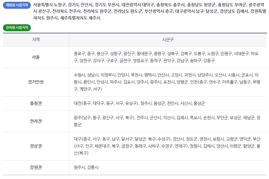 지금까지는 시범 사업이라 아래와 같이 예방형 15개 지역과 관리형 10개 지역에서만 이루어졌는데 24년부터는 관리형 지역이 109개 지역으로 10배 이상 확대됩니다 그리고 109개 지역은 기존의 1차 의료 만성질환 관리 시범사업이 이루어지던 모든 지역이 다 포함됩니다