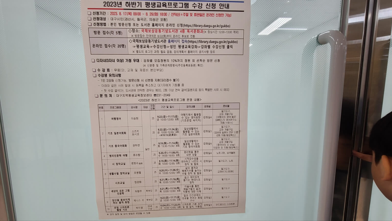 이벤트도 하고 토요도서관이라고 초등학생을 대상으로 하는 강좌나 성인들을 위한 평생교육과정도 있습니다. 시간이 되시면 참가해 보시면 좋을 것 같습니다.