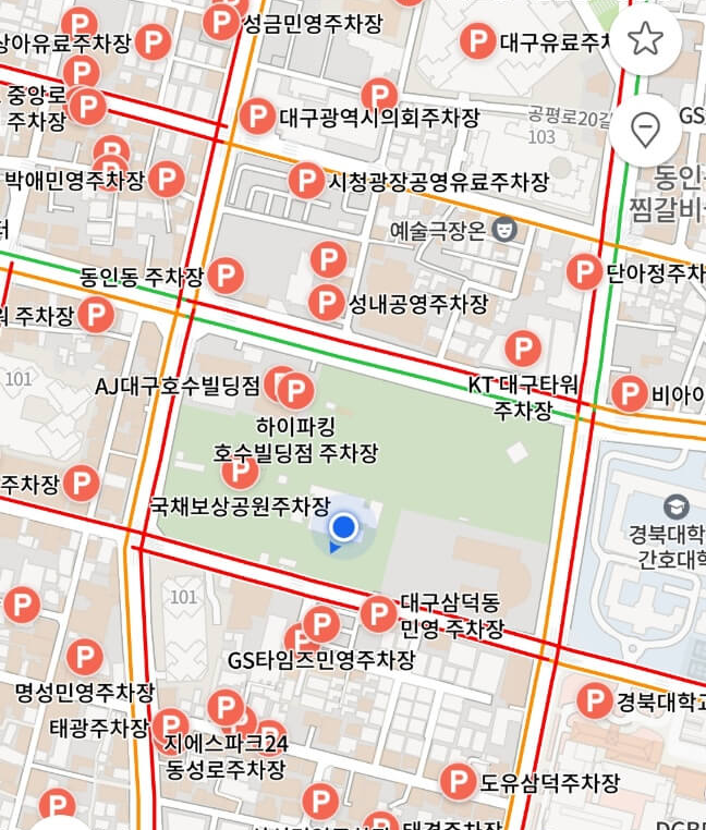 가장 가까운 주차장은 국채보상기념공원주차장입니다. 지하 1~3층까지 유료로 이용되고 있으나 현재는 지하 2층이 공사 중이라 혼잡하고 약간 옛날에 지어진 곳이라 주차 간격이 좁아 차끼리 문콕은 당연하고 심지어 조금만 큰 차가 있어도 주차 후 문이 열리지 않는 곤란한 상황이 연출됩니다 그럼에도 불구하고 저는 국채보상기념주차장에 주차를 했습니다. 왜냐하면 가깝기 때문입니다. 도서관으로 바로 연결도 되고요. 국채보상기념주차장을 이용하신다면 지하 3층에 주차하시고 동쪽 2번 출구를 이용해 엘리베이터로 1층에 내리시면 도서관과 바로 연결됩니다.