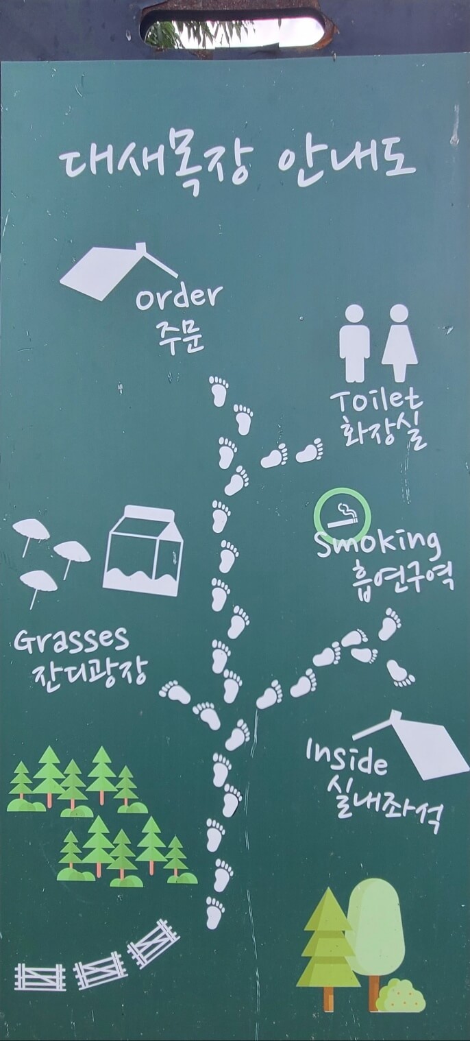 주차하시고 목장으로 들어가면 나무와 풀 이정표들을 만날 수 있습니다