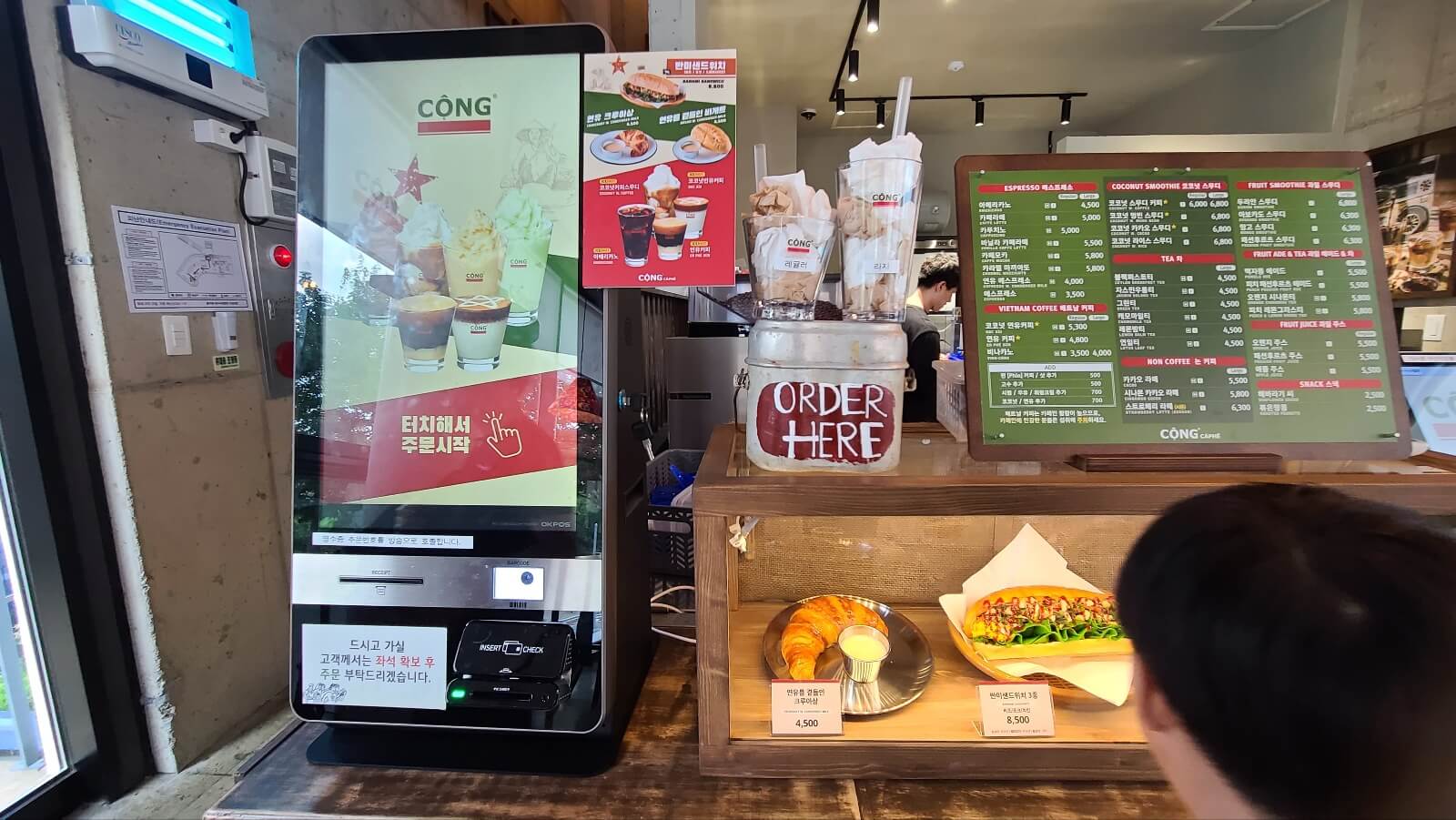 주문과 결제는 키오스크로 하시고 주문이 된 음식들은 바로 조리되므로 시간이 꽤 걸리는 듯했습니다. 음료만 주문하면 남들보다 빨리, 음료에 반미를 추가하시면 조리시간은 남들보다 조금 길어집니다.