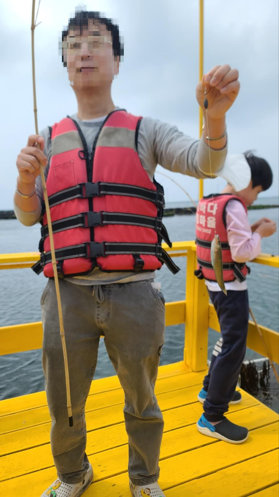 진짜 아무나 다 되나 싶어 아버지도 한번 던져 봤는데 바로 놀래기가 잡힙니다