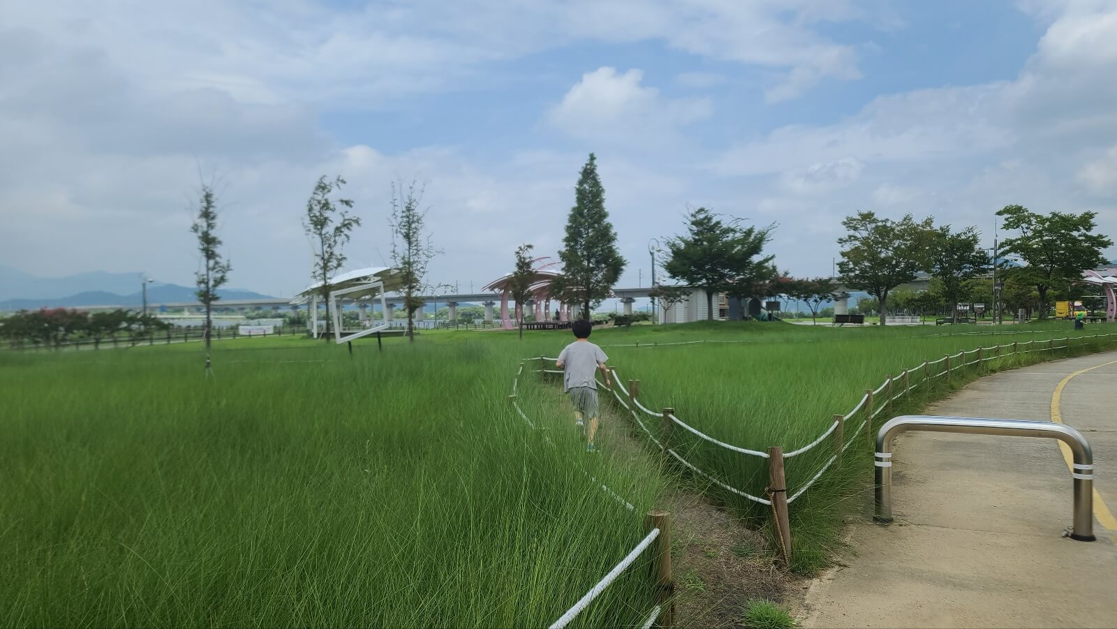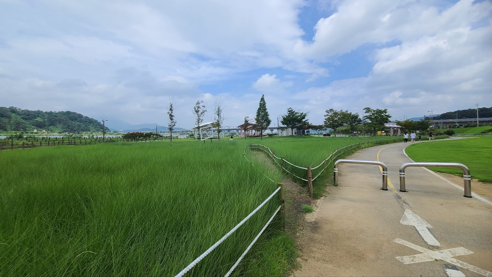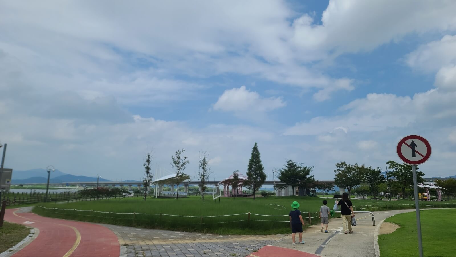 수변조망권 어떠신가요 뻥 뚫린 강을 보며 걸어보면 기분도 좋아집니다. 단 땡볕이라 선크림 모자 꼭 준비하세요 하지만 걷는 시간이 2~3분 내외라 크게 걱정 안 하셔도 됩니다.